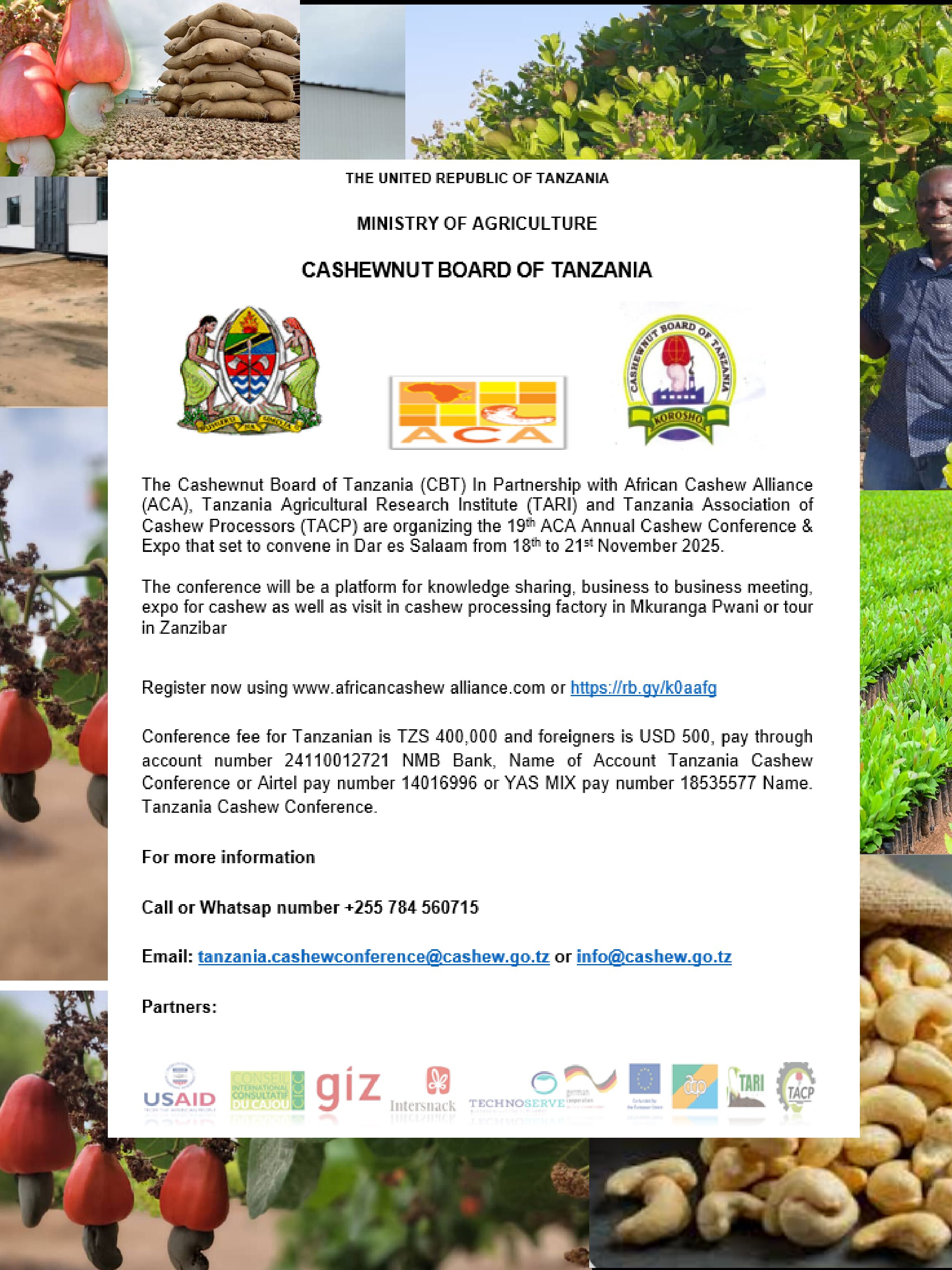 EventsNewsPublicationsSliderTHE 19th ACA ANNUAL CASHEW CONFERENCE & EXPO 18 – 21 NOV. 2025 September 25, 2025September 25, 2025216 DOWNLOAD